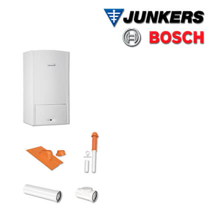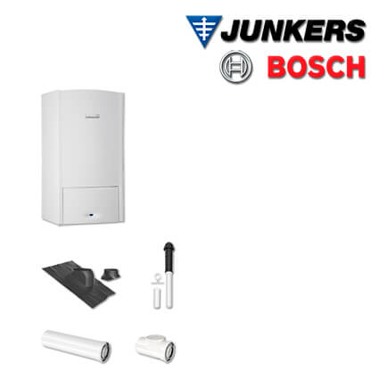 Junkers Bosch Gas-Brennwerttherme ZSB 14-5.2 C, ZSB530 mit Abgas Dach rot, L/LL