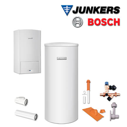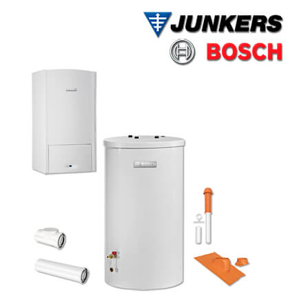 Junkers Bosch Gas-Brennwerttherme ZSB 14-5.2 C, ZSB530 mit Abgas Dach rot, L/LL