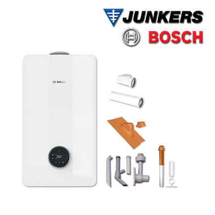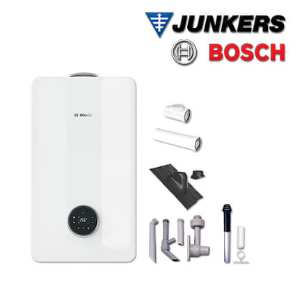 Junkers Bosch GCC53-020 mit Gas-Kombitherme GC5300iW 20/24 C 23, Abgas Dach schw