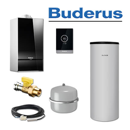 Buderus GB182-14i, W42, Gas-Brennwerttherme, schwarz, SU200 Speicher, RC310, E/H