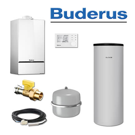 Buderus GB182-24i, W42, Gas-Brennwerttherme, weiß, SU200 Speicher, RC310