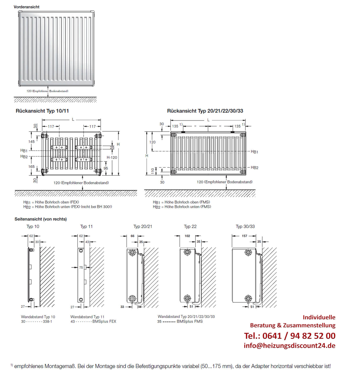 - Alle Heizkörper (Typ 11 – 33) für Buderus Montage-System BMSplus zur schnellen Wandmontage vorbereitet