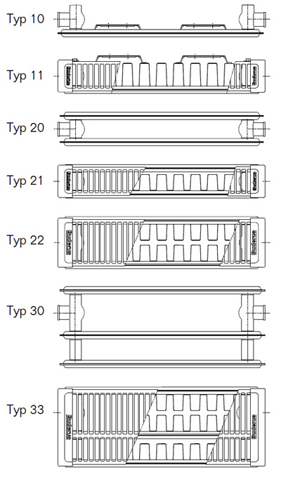 Erhältliche Buderus Heizkörper Typen / Stärken: