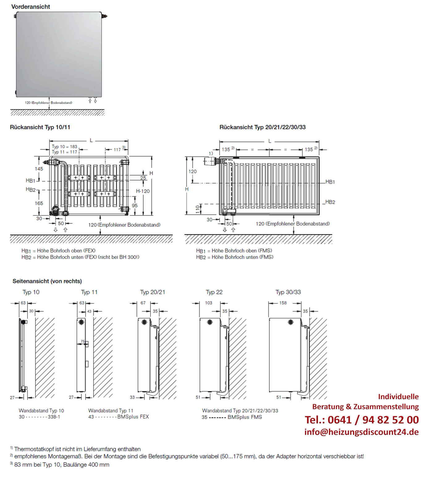 - Alle Heizkörper (Typ 11 – 33) für Buderus-Montage-System BMSplus zur schnellen Wandmontage vorbereitet