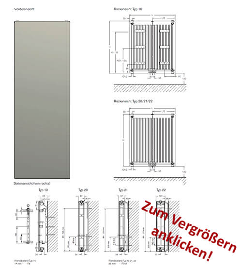Erhältliche Buderus Heizkörper Typen / Stärken:
