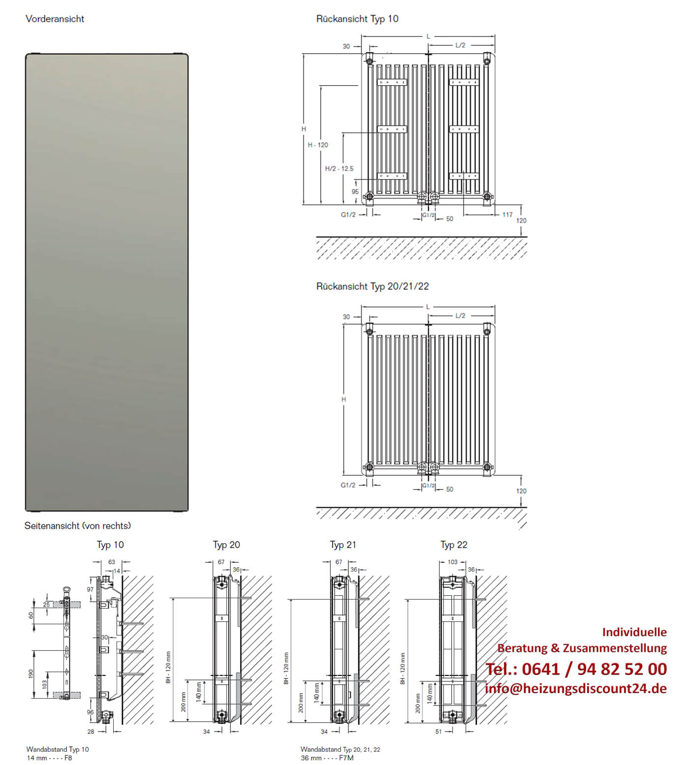 - Lieferung inkl. Befestigungssystem F8 (für Typ 10) bzw. F7M (für Typ 20,21,22)