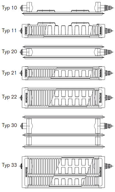 Erhältliche Buderus Heizkörper Typen / Stärken: