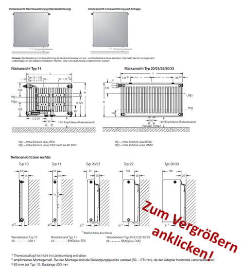 - Alle Heizkörper (Typ 11 – 33) für Buderus-Montage-System BMSplus zur schnellen Wandmontage vorbereitet