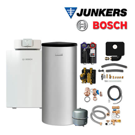 Junkers Bosch Olio Condens 8000i F Öl-Brennwert-Paket OC8iF11 inklusive Öl-Brennwertkessel OC8000iF 25, liegendem Warmwasserspeicher Stora WH 135-3 P 2 B und Heizkreisset HSM25/6 MM100 für 1 gemischten Heizkreis